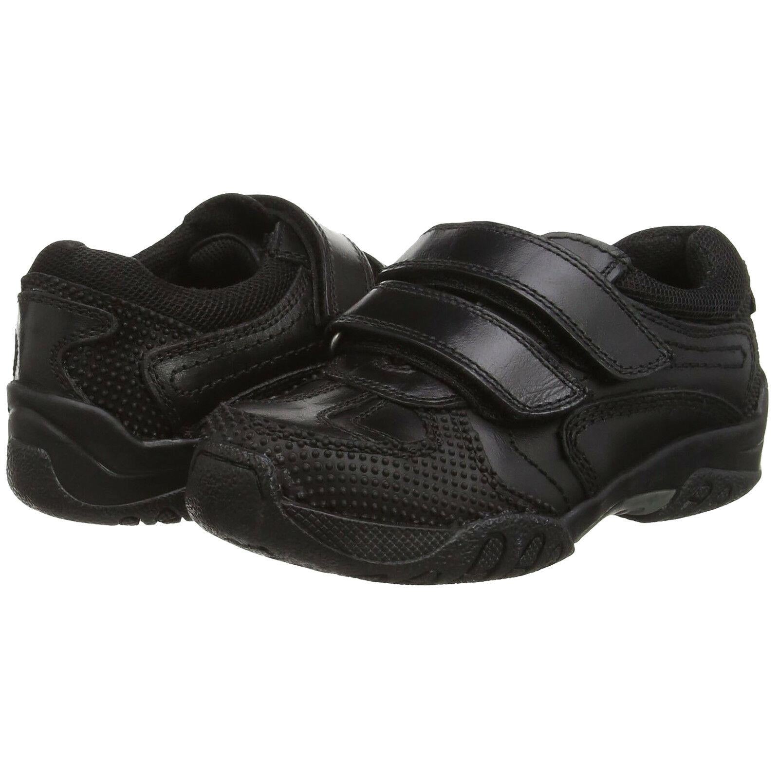Boys Hush Puppies Jezza SNR Black Leather Double Strap School Shoes Size 3 – 9