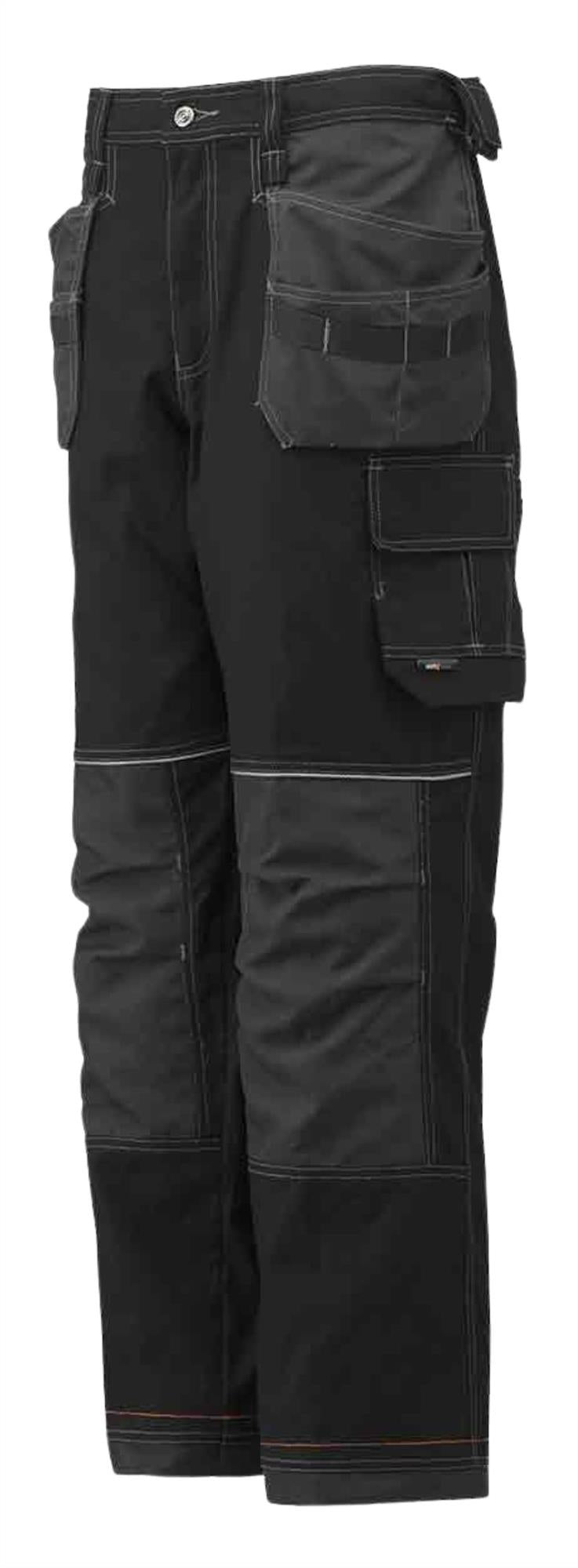 Colour = Black With Grey, Material : 79% Cotton, 21% Polyester 295 g/m², Reinforcements : 100% Nylon Cordura 219 g/m², Inside Leg Can Be Lengthened By 2" By Unpicking The Hem, Cordura Reinforcement Fabric, Two Hand Pockets With Reinforcement Fabric, Two Bellowed Back Pockets, One With Flap, Velcro Closure And Reflective Piping, Gusset In Crotch, 5cm Cordura Fold At Bottom Hem Gives The Option To Make C100 Sizes, Bellowed Thigh Pocket With Phone Pocket And Space For Pen, Belt Loops With 'click.on' Function, Broad Belt Tunnel In Back For Support And Stability, Rule Pocket With Reinforcement Fabric On Top And Bottom, Double Bottom For Extra Strength, Removable Button With Spare Button On Rule Pocket, Reflective HH Logo In Front And HH Logo On Bottom Leg In Back