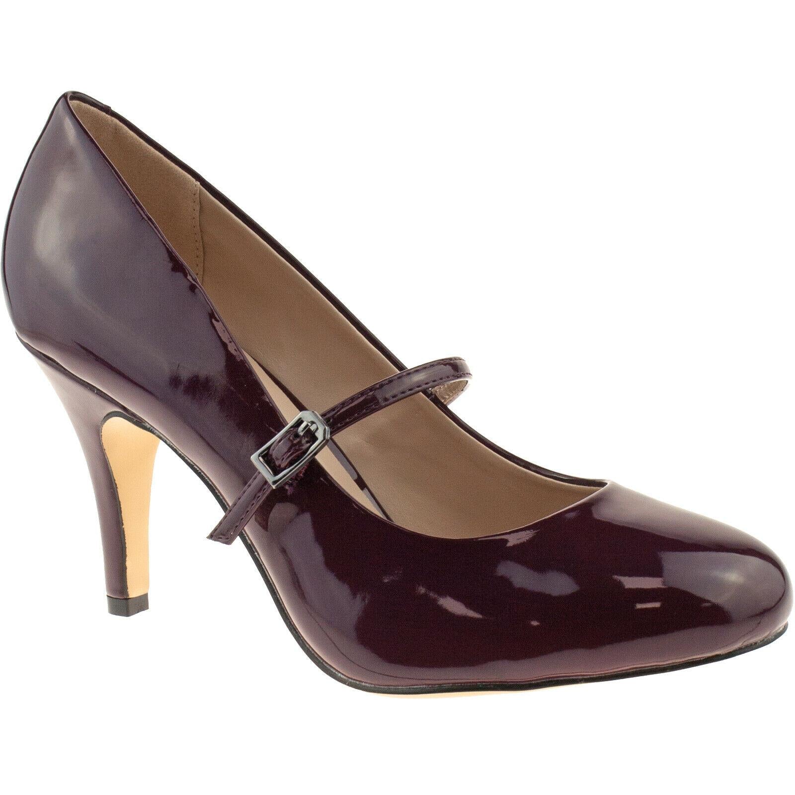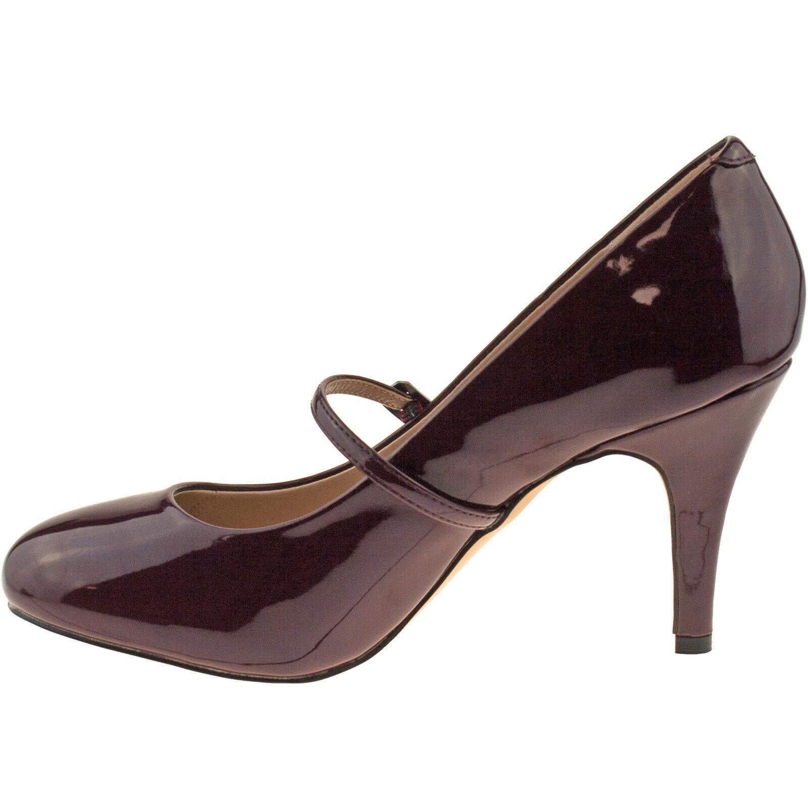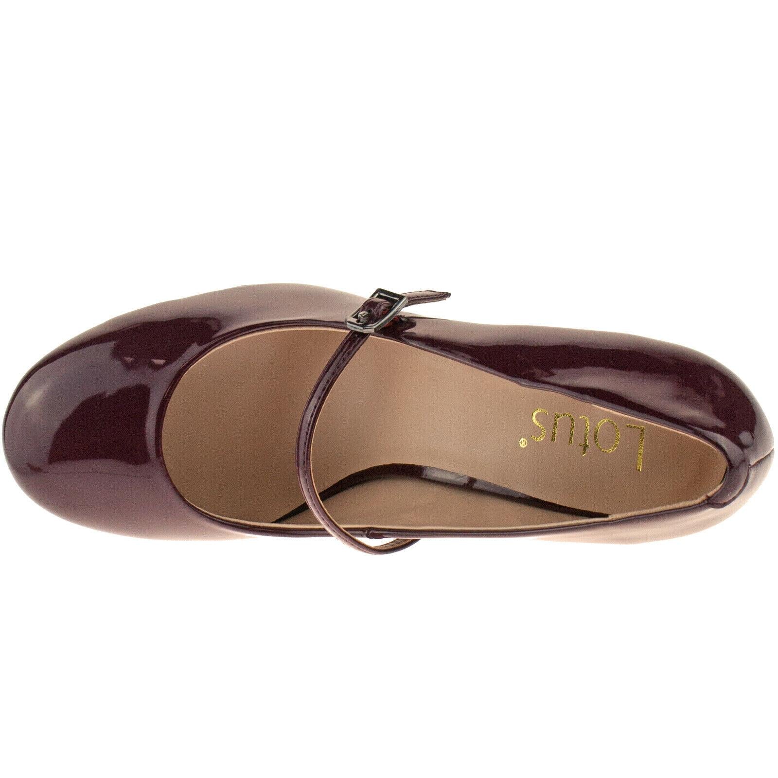 Ladies Lotus Serenoa Bordo Patent Shoes Mary Jane Vintage Retro Heels 50321BR