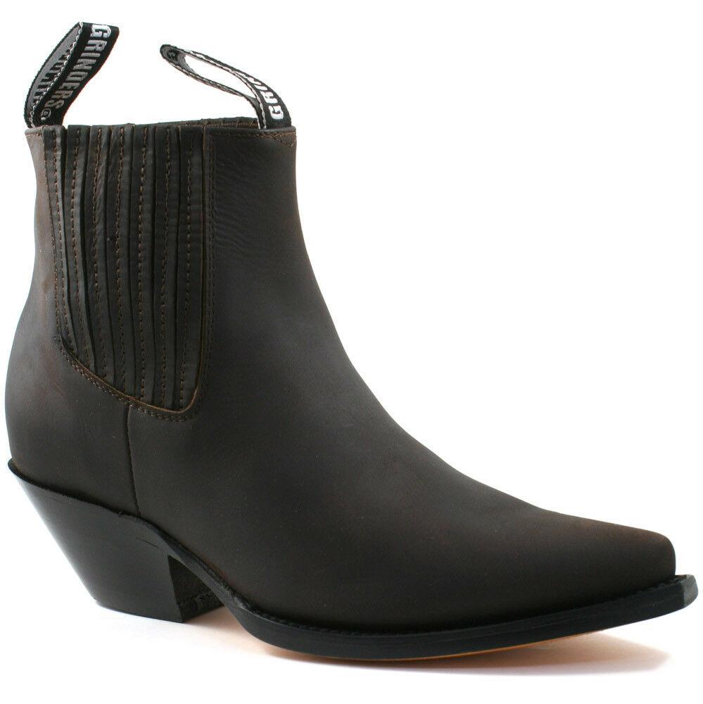 Mens Grinders Mustang Brown Leather Western Ankle Cowboy Boots
