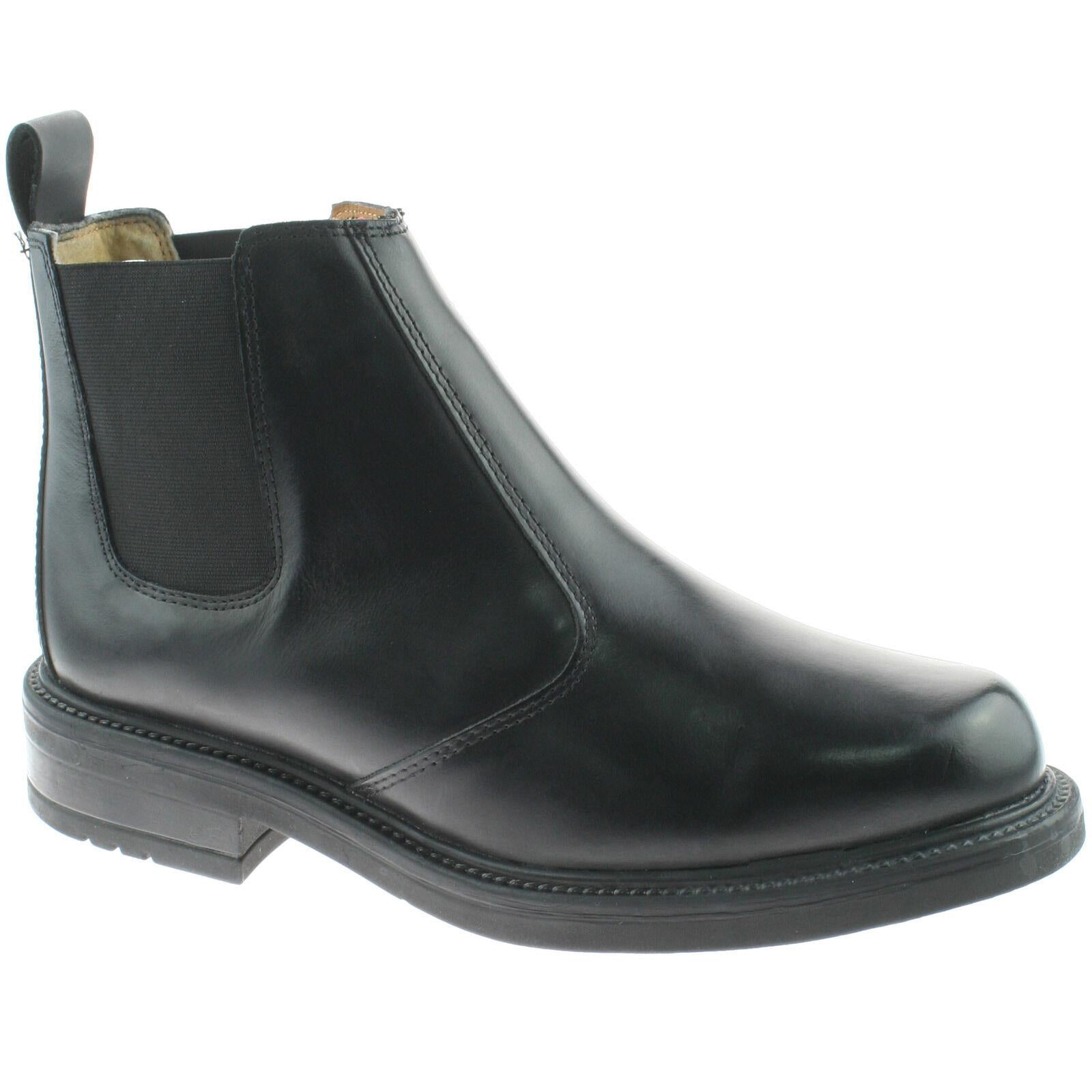 Mens Roamers Black Leather Chelsea Boots Twin Gusset Slip On Dealer M049A
