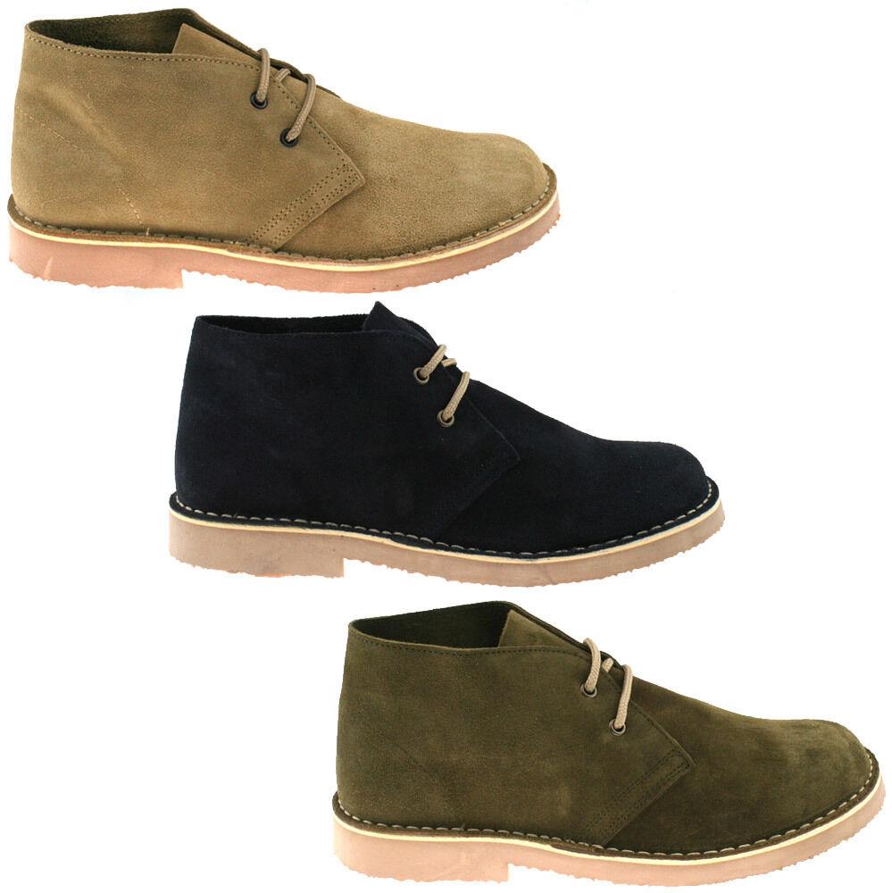 Mens Roamers Camel Khaki Navy Desert Suede Leather Boots Round Toe M400