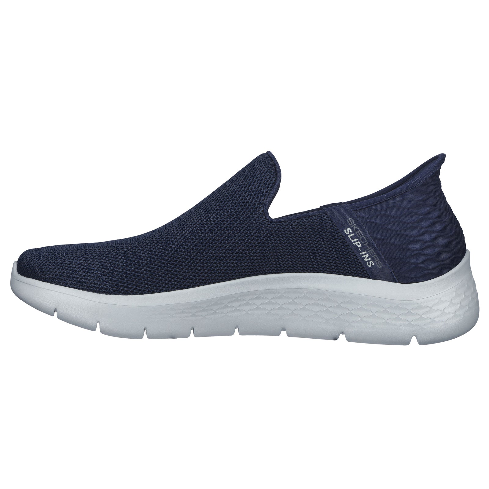 Just step and go in flexible comfort and style wearing Skechers Hands Free Slip-ins™ GO WALK® Flex. This easy-wearing design features exclusive Heel Pillow™, Skechers Air-Cooled Memory Foam® insole and a lightweight ULTRA GO® cushioned midsole.