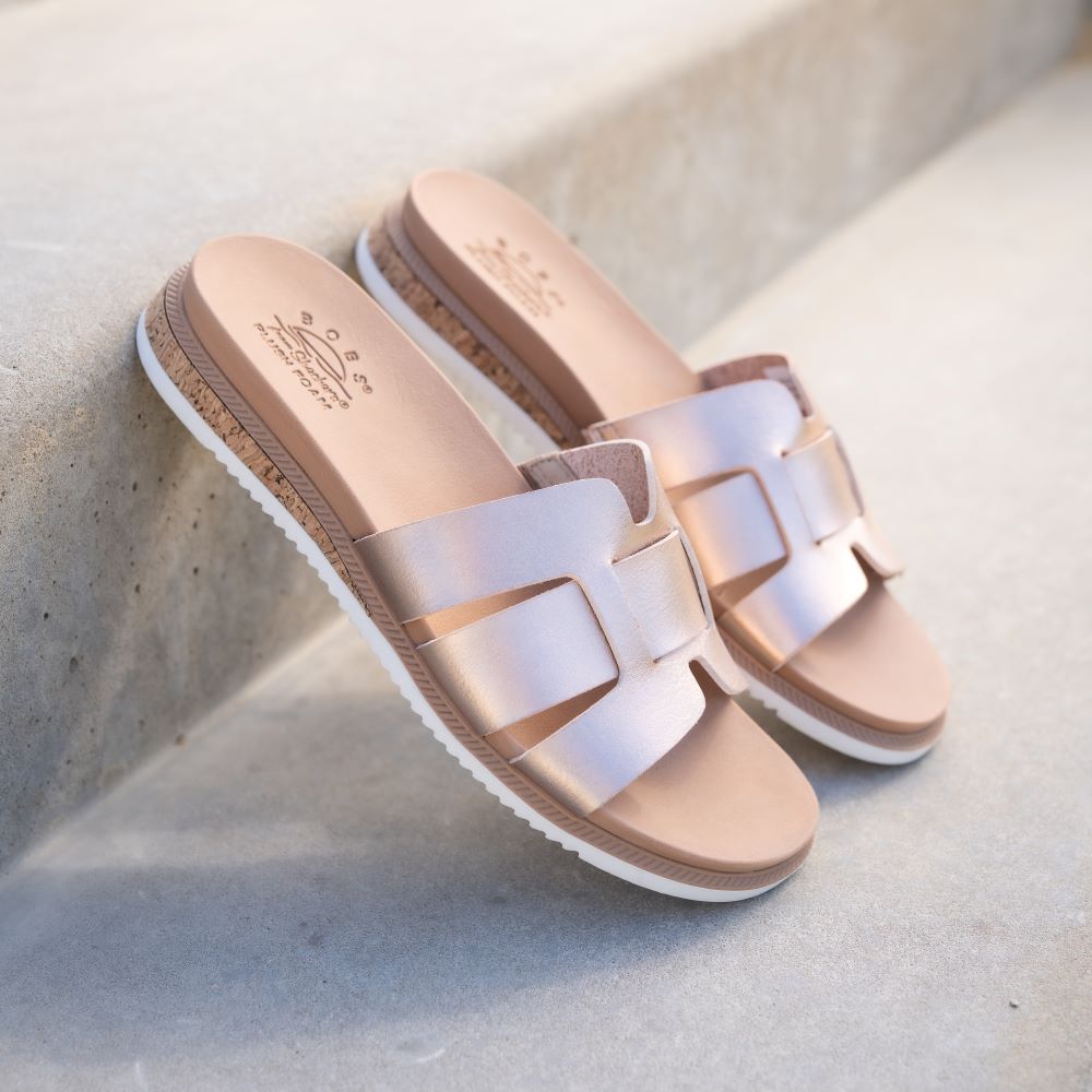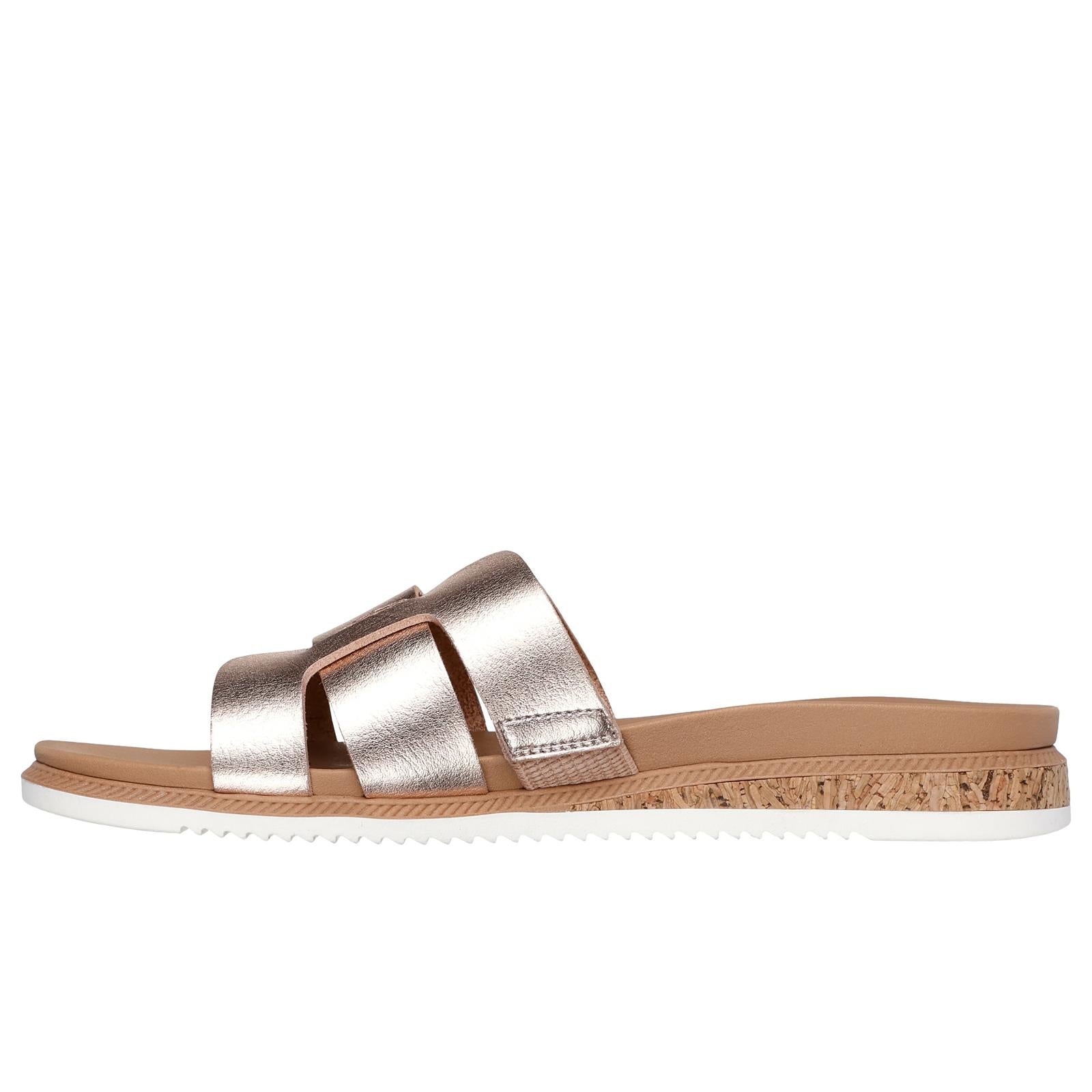 Skechers® BOBS® Desert Kiss – Peak Look are perfect for warm weather style. This chic slide sandal features a vegan-leather strap, cork veneer trimmed midsole, and a plush foam cushioned footbed for all-day comfort. 100% vegan with flexible traction outsole.
