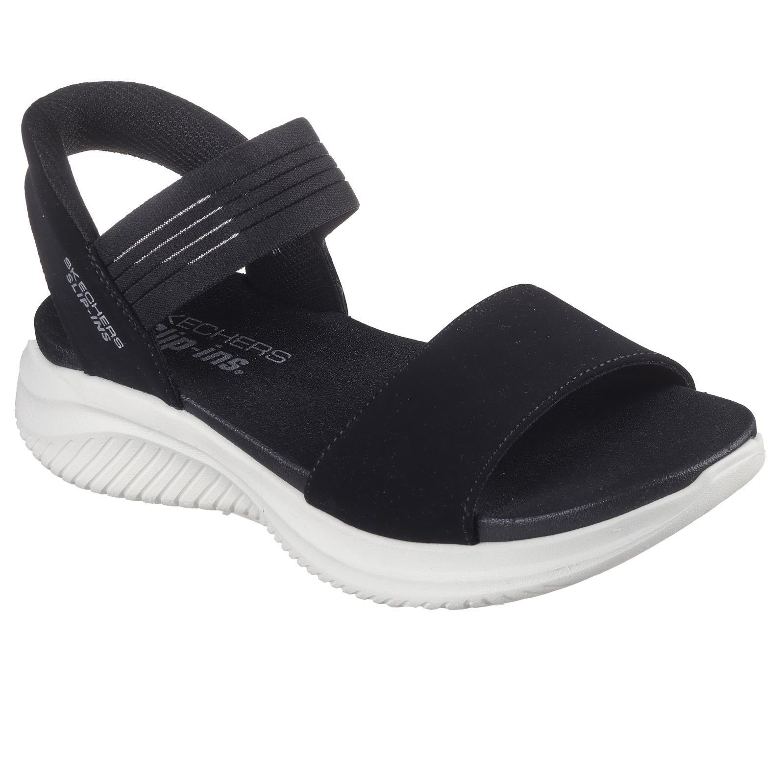 Enjoy sunny days in breezy comfort with Skechers Hands Free Slip-ins®: Ultra Flex 3.0 - Summerville. Designed with our Heel Pillow™, this slingback sandal features a synthetic and stretch fabric strap upper with a cushioned Yoga Foam® footbed.
