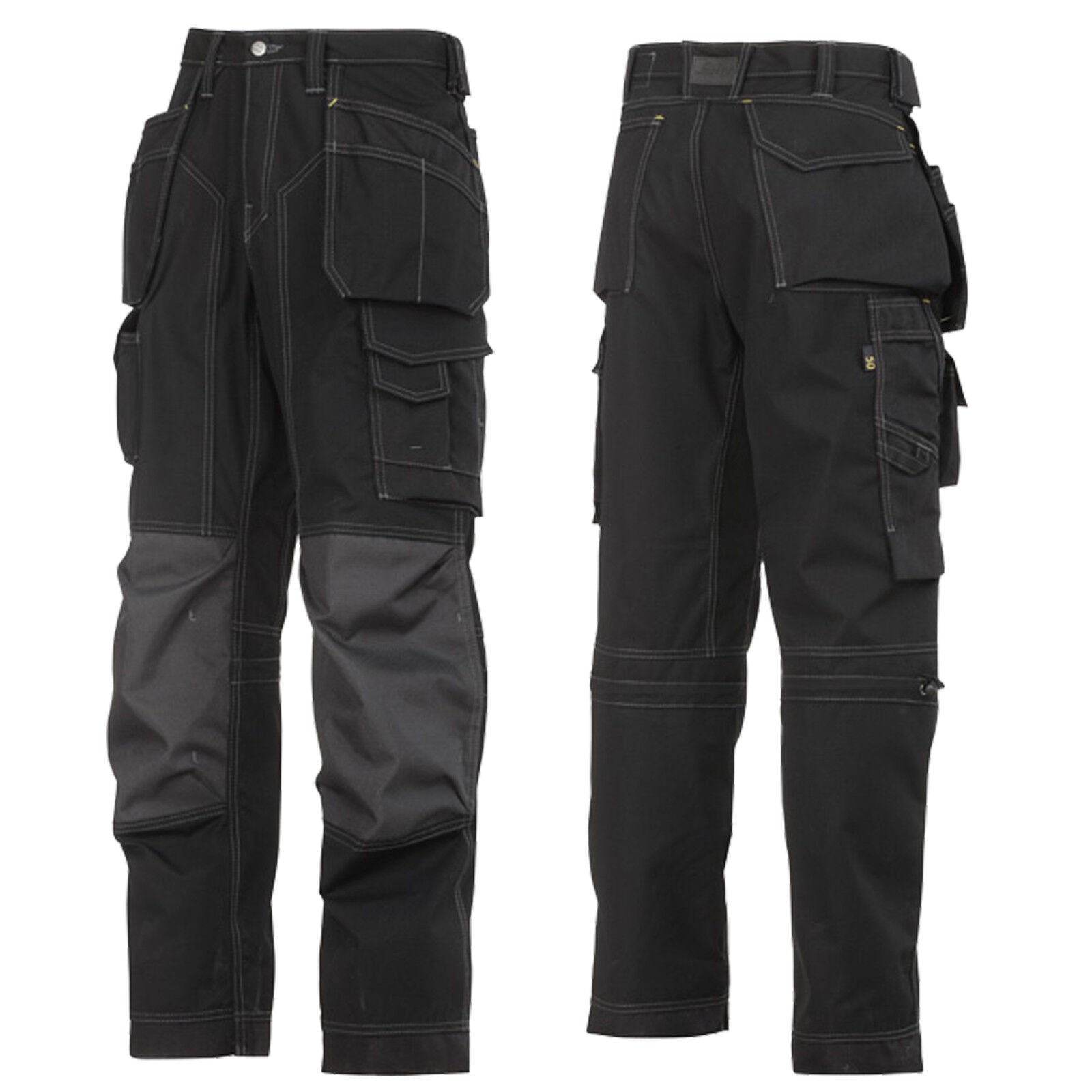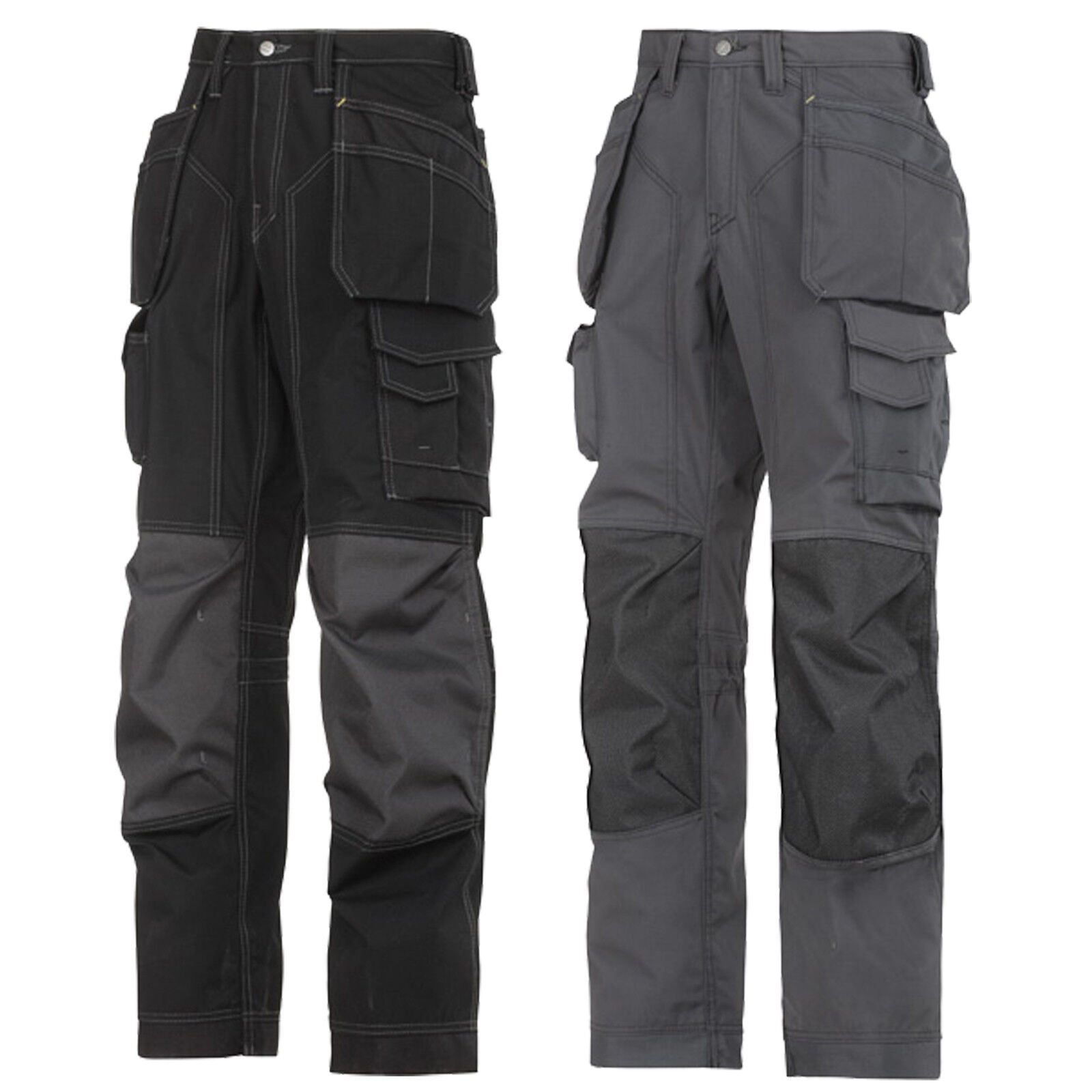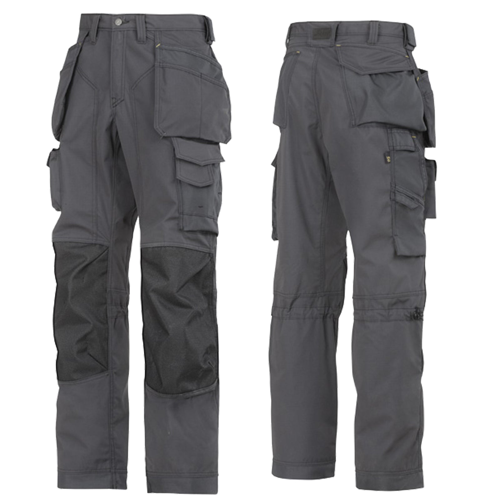Snickers Workwear Floorlayer trousers are specifically made with an innovative cut giving the perfect fit for the man who spends a lot of time on his knees, Available in Black or Steel Grey, 3 Series trousers with holster pockets to carry your essentials , Advanced cut with Twisted Leg™ design and Snickers Workwear Gusset™ in crotch for outstanding strength and working comfort with every move, Knee pad pockets reinforced with coated Kevlar® for extra durability. Features adjustable elastic string that keeps your Snickers Floor layer knee pads in position, Made in durable rip-stop fabric with double fabric on the thighs for an even longer service life, Easy-access knife pocket with protective flap on the right thigh, Convenient leg cargo pocket with separate mobile phone compartment and four pen/tool compartments, 65% Polyester, 35% Cotton, 250 g/m². Featuring 100% Polyamide Cordura® reinforcements, 54% Polyester/24% Aramide/13% Polyamide/9% Polyurethane knee reinforcements, Machine Washable