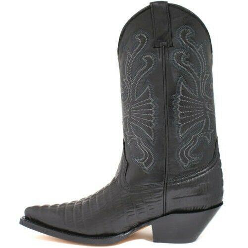 Grinders Carolina boots are a real head turner thanks to the extra special detailing on the boots, Leather Uppers With "Croc Tail" Design, Contrast Stitch Design Surrounding The Leg, Two Pull Loops To Sides For Easy On, Durable Goodyear Welted Forefoot, Leather Sole Unit With 2¼" Cuban Heel, Full Leg Leather Lining & In-sock, Please Note That Any Scuffs Or Marks On The Uppers Are Due To The Distressed Style Of The Leather Used